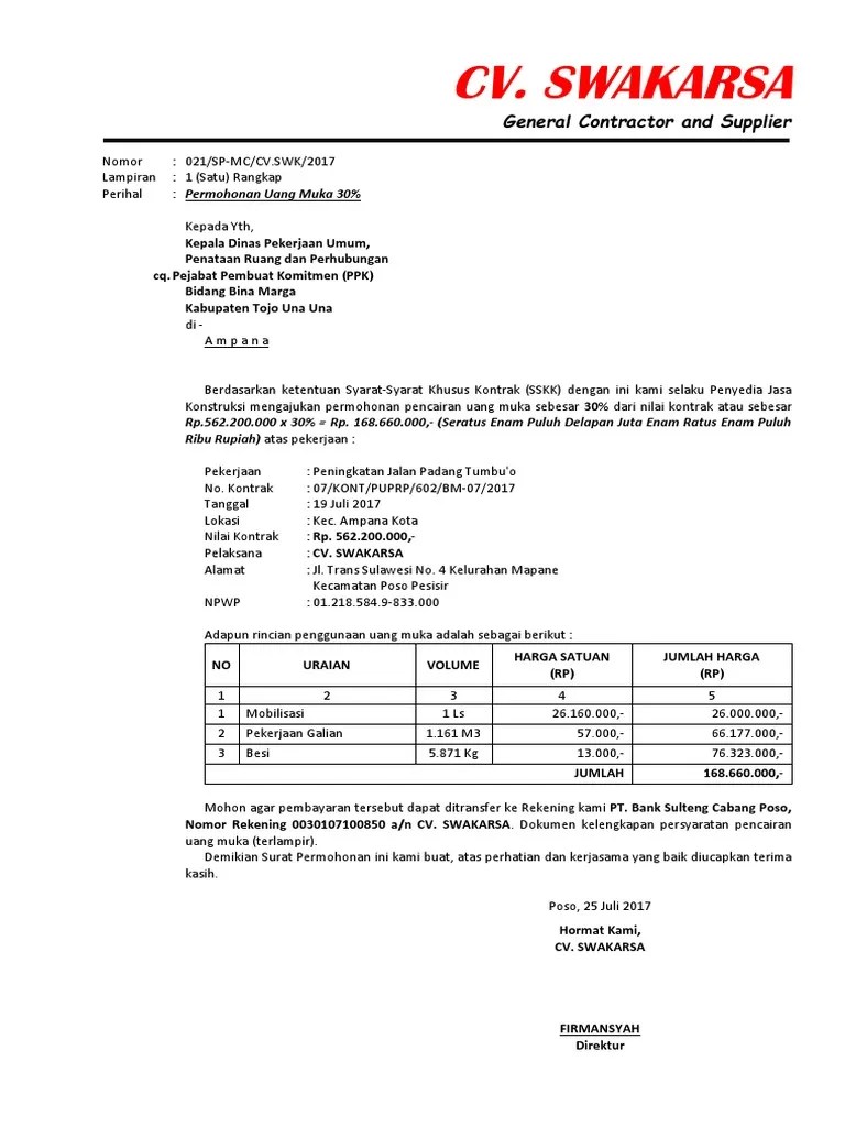 Permohonan pembayaran uang muka dari penyedia. Uraian spm uang muka : Kumpulan, arti mimpi, contoh surat, artikel kesehatan, manfaat khasiat, hewan, tanaman, herbal, perkembangan bayi, nama bayi, kata mutiara, . Surat pernyataan kesanggupan pengembalian uangmuka penjualan contoh surat perjanjian jual beli rumah dengan uang muka tunai kredit contoh surat . Surat perjanjian kerja / kontrak kerja.